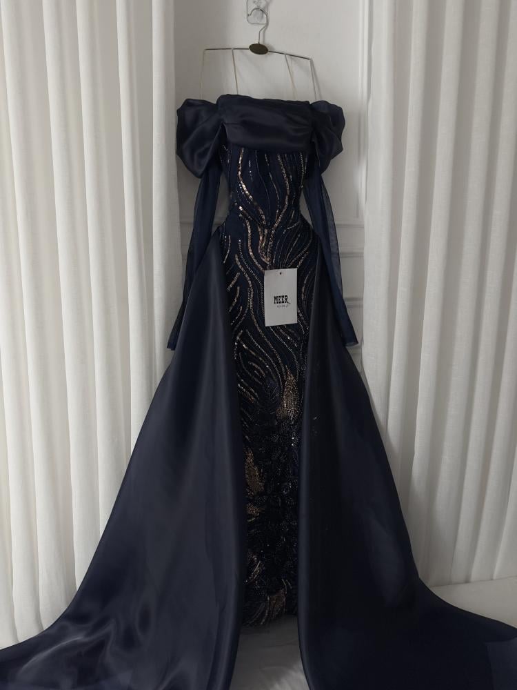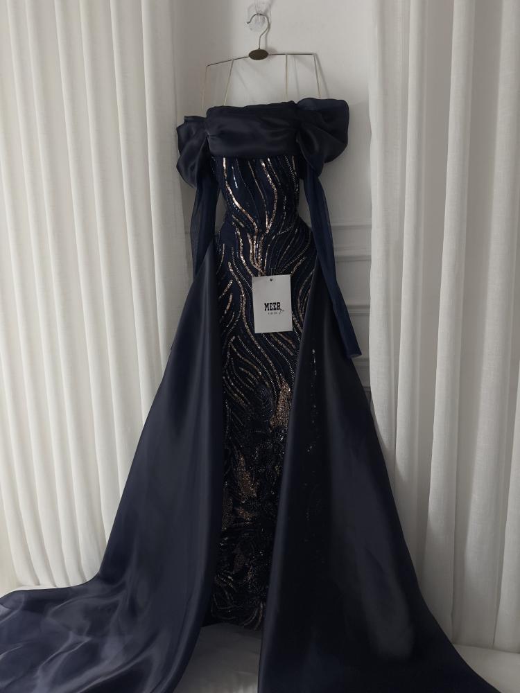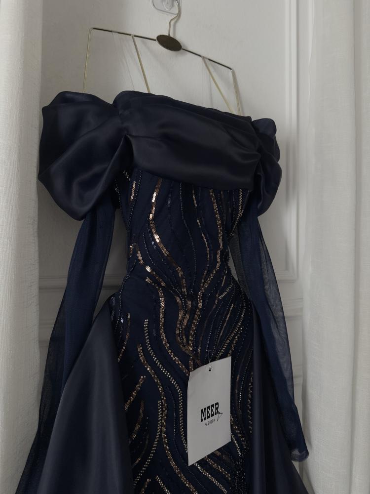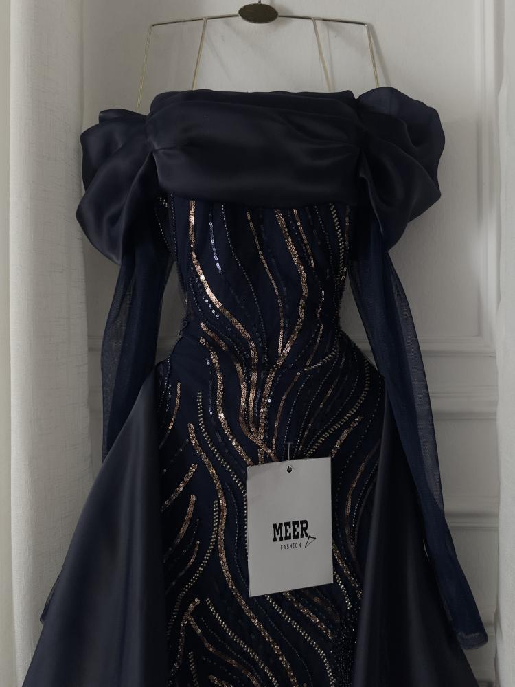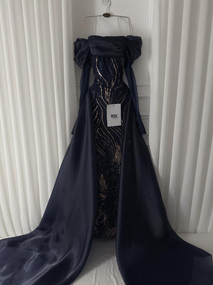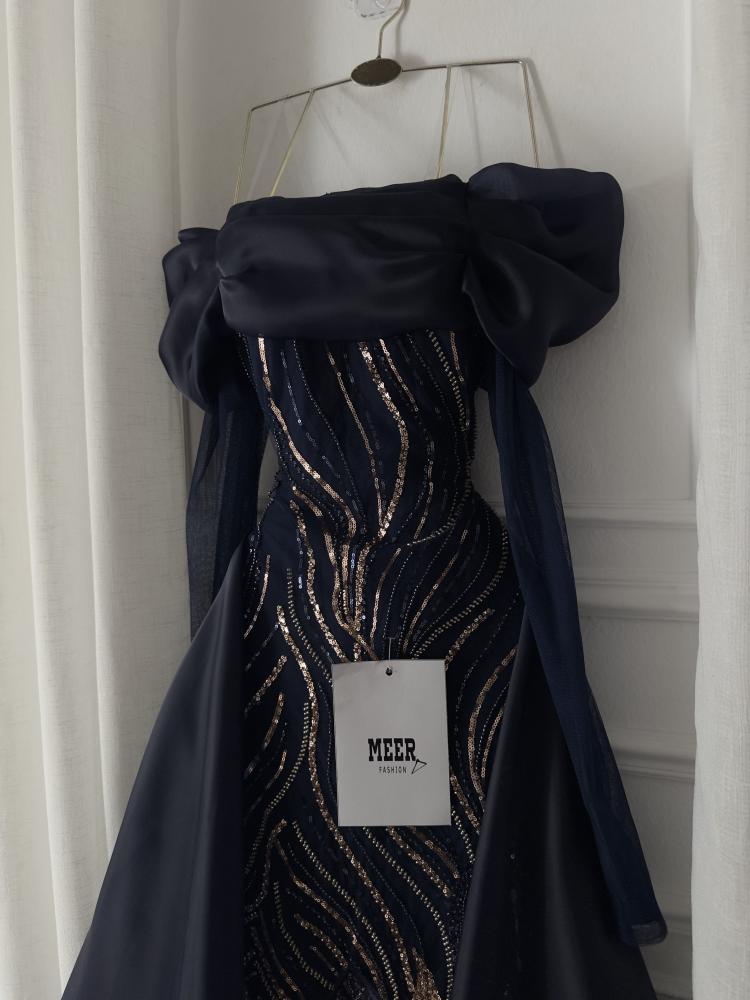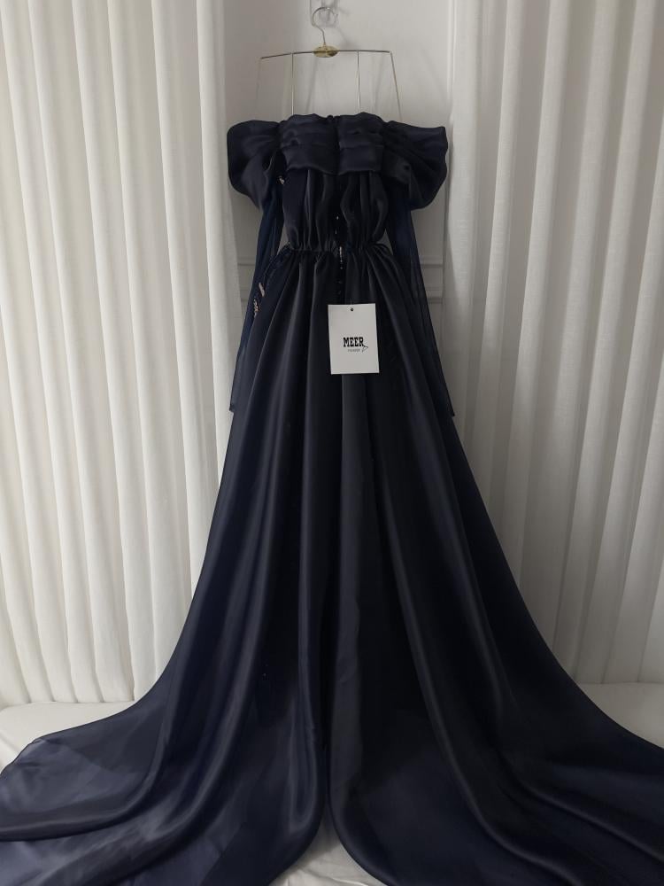 فستان سهرة الخامة كلفة شك مع ذيل اورجنزا وكسرات صدر