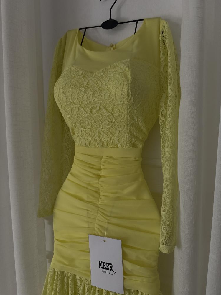 فستان ناعم بخامة الدانتيل مع بطانة ناعم بالإضافة إلى كسرات بقصة حصرية بحيث تعطي إطلالة أنيقة