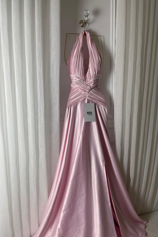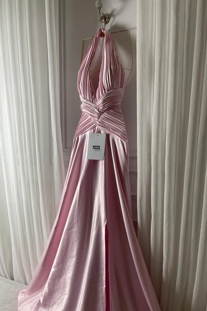 فستان ناعم بتصميم أنيق بكسرات صدر فتحة ساق